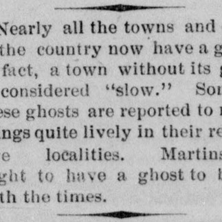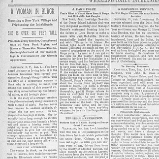 Newspapers around the US printed ghost stories to entertain and frighten readers. A Martinsburg, WV newspaper even reported that a town which does not have its own ghost is considered “slow.” One of the most popular ghost stories printed at that time involved a Woman in Black.